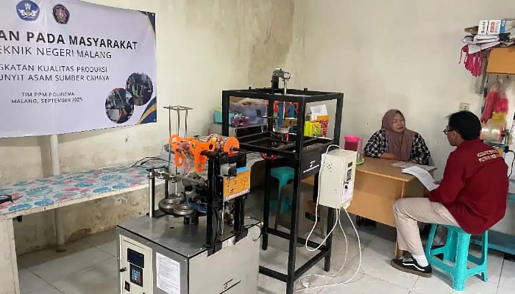 MALANG, Tugumalang.id – Tim Pengbadian Kepada Masyarakat (PKM) Politeknik Negeri Malang (Polinema) menggelar kegiatan pelatihan bertajuk Peningkatan Kualitas Produksi Jamu Kunyit Asam Cahaya Rasa pada 13-14 September 2025.
