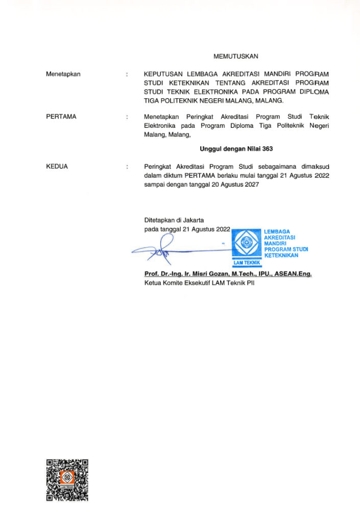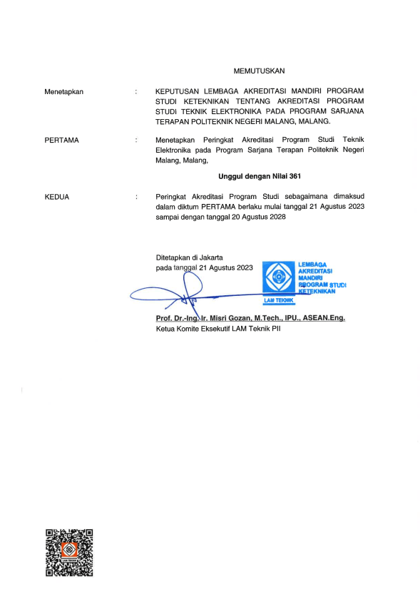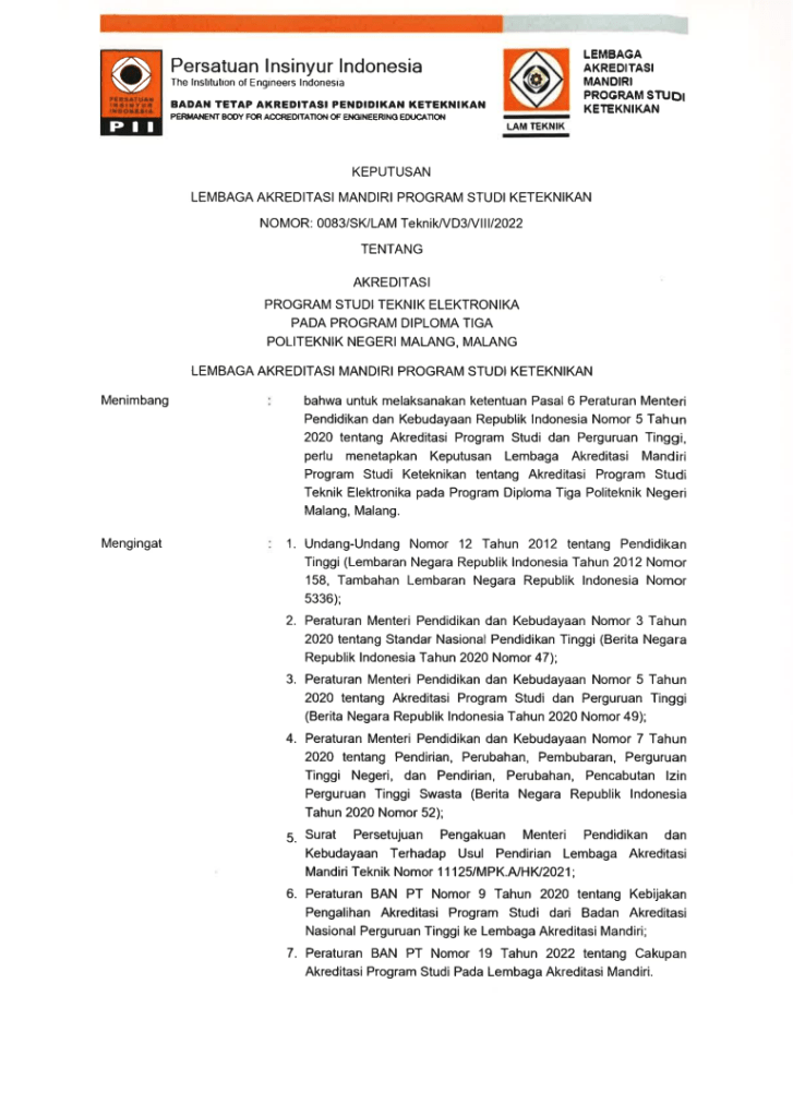 SK Akreditasi D-III Teknik Elektronika